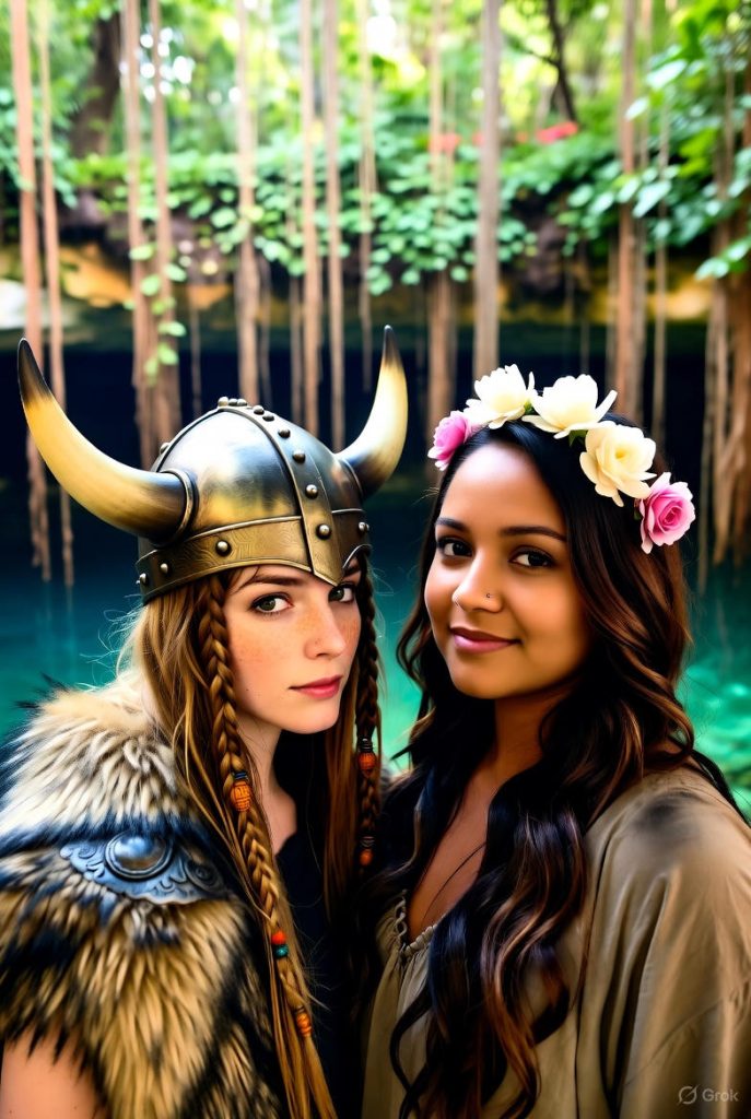 When the climax peaks, the cenote erupts in a burst of phosphorescent flame. The Viking Milk, now transmuted, mingles with sacred water, spawning hybrid deities—blonde, feathered, indomitable—who rise like phoenixes from the abyss.
